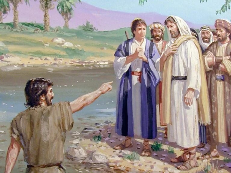 Al día siguiente, Juan estaba de nuevo allí con dos de sus discípulos.